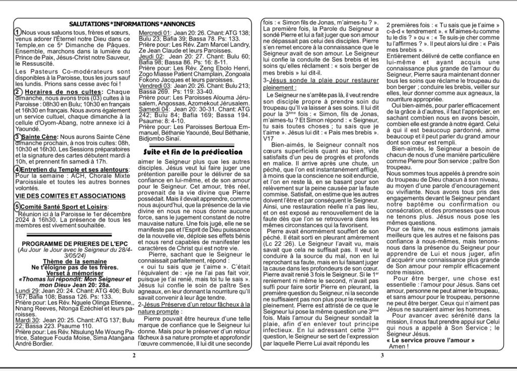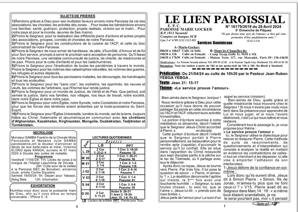 • Abstract de la prédication du dimanche 29 mars 2026 à la Paroisse Marie Gocker au culte de 10 h 30 par le Pasteur Bessala Mbesse