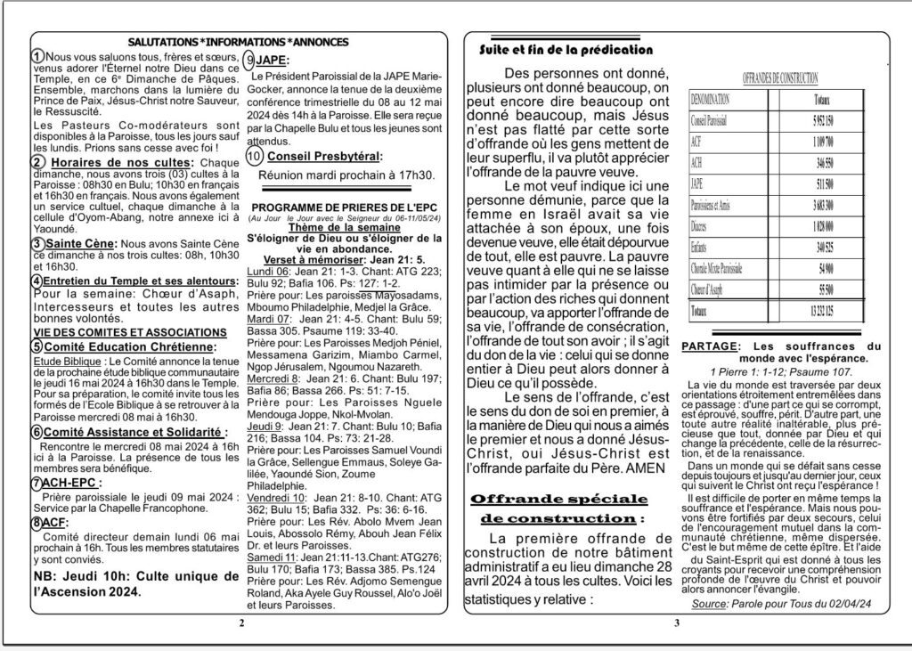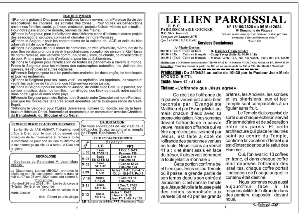 Lien paroissial N° 16180/2620 du 05 Mai 2024*