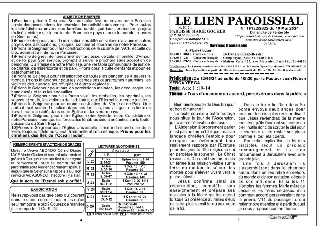 LIEN PAROISSIAL N° 16182/2622 du 19 Mai 2024