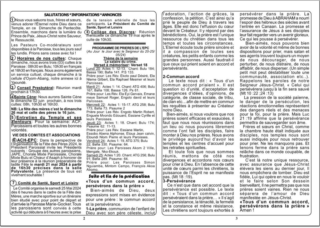 • Abstract de la prédication du dimanche 29 mars 2026 à la Paroisse Marie Gocker au culte de 10 h 30 par le Pasteur Bessala Mbesse