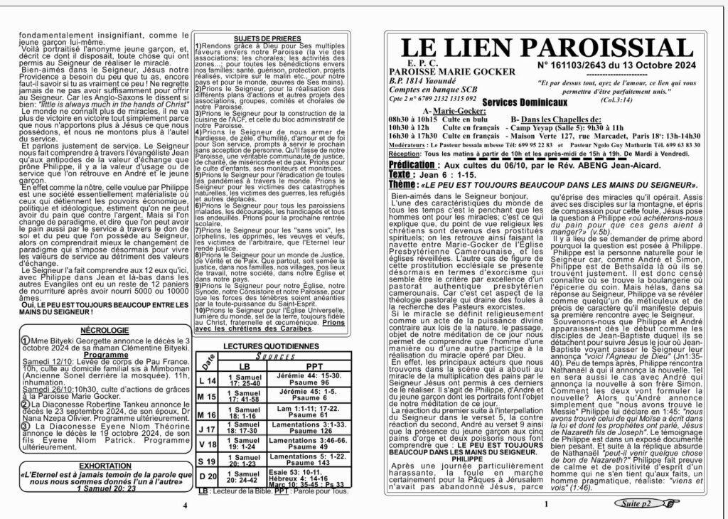 LIEN PAROISSIAL N° 161103/2643 du 13 Octobre 2024