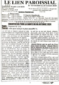 LIEN PAROISSIAL N° 161104/2644 du 20 Octobre 2024