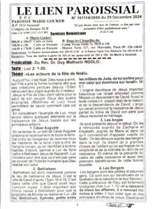 LIEN PAROISSIAL N° 161114/2654 du 29 Décembre 2024 Posted by : Liliane SOMBANG née NENDOU 29 décembre 2024 0