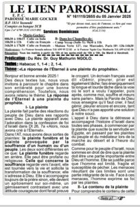 LIEN PAROISSIAL N°161115/2655 du 05 Janvier 2025 Posted by : Liliane SOMBANG née NENDOU 7 janvier 2025 0