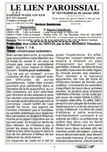 LIEN PAROISSIAL N°161118/2658 du 26 Janvier 2025 Posted by : Liliane SOMBANG née NENDOU 26 janvier 2025 0