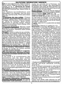 • Culte du Jour