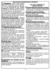 LIEN PAROISSIAL N° 161149/2689 du 31 Août 2025 Posted by : Liliane SOMBANG née NENDOU 1 septembre 2025 0