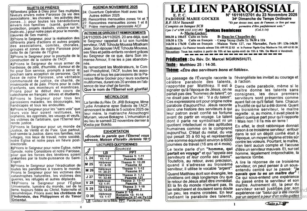 LIEN PAROISSIAL N°161161/2701 du 23 Novembre 2025