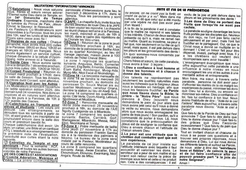 • Abstract de la prédication du dimanche 15 février 2026 au culte de 10 h 30 à la Paroisse Marie Gocker par la jeune Diacre Noëlle BIKIM