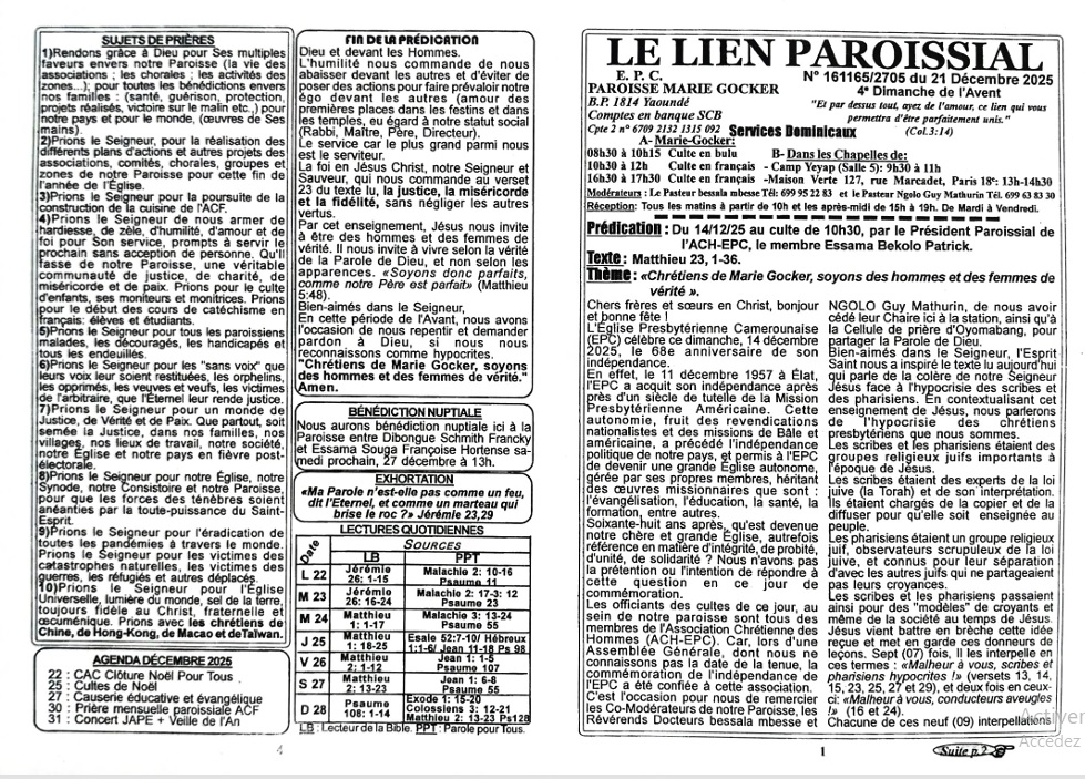 LIEN PAROISSIAL N° 161165/2705 du 21 Décembre 2025
