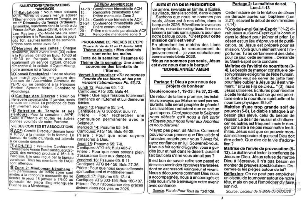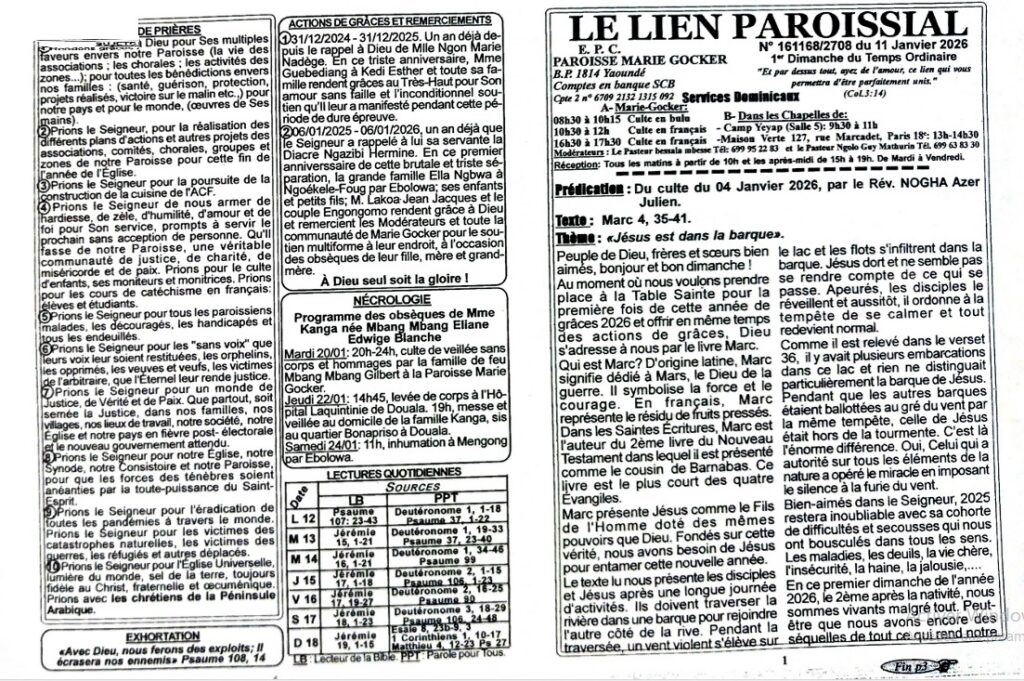 LIEN PAROISSIAL N° 161168/2708 du 11 Janvier 2026