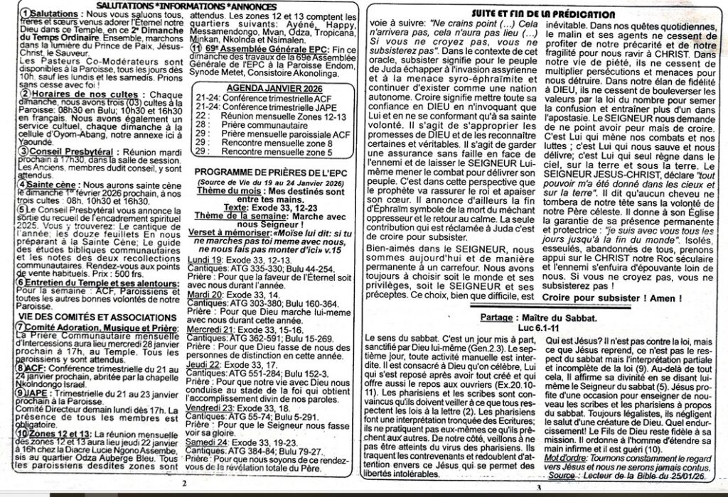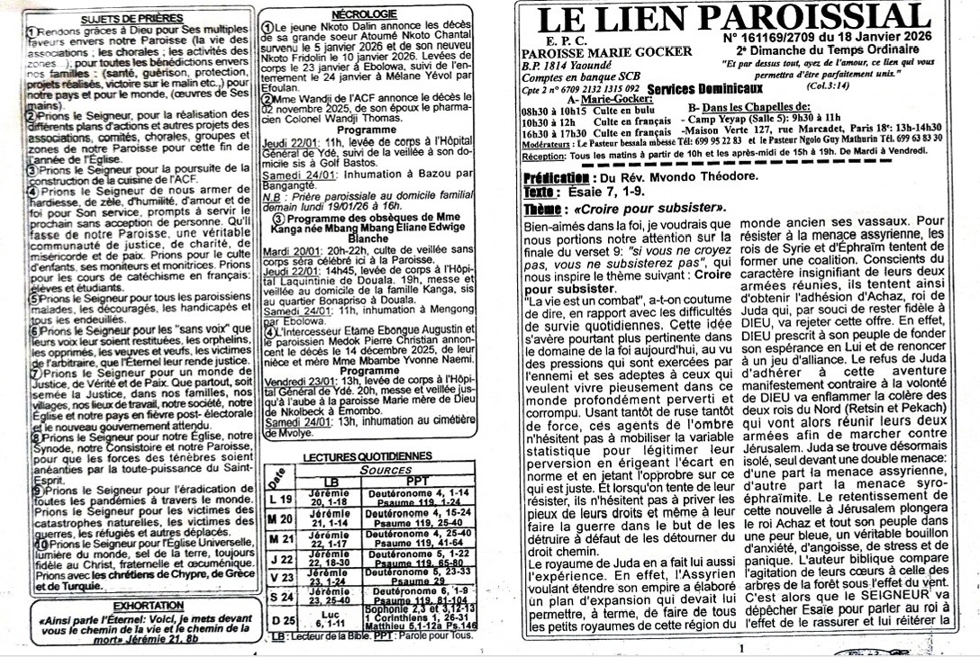 LIEN PAROISSIAL N° 161169/2709 du 18 Janvier 2026