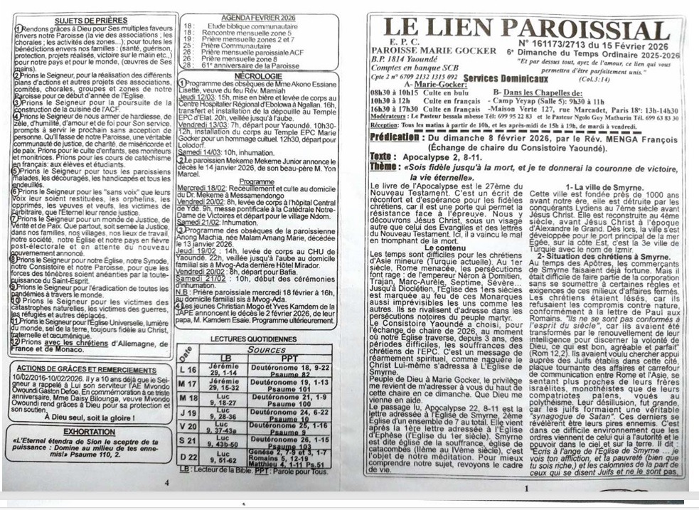 LIEN PAROISSIAL N°161173/2713 du 15 Février 2026