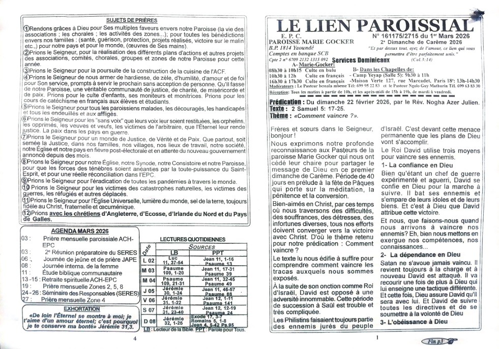 LIEN PAROISSIAL N° 161175/2715 du 1er Mars 2026