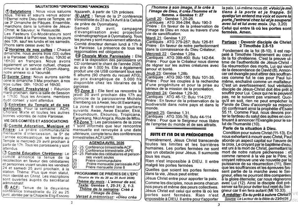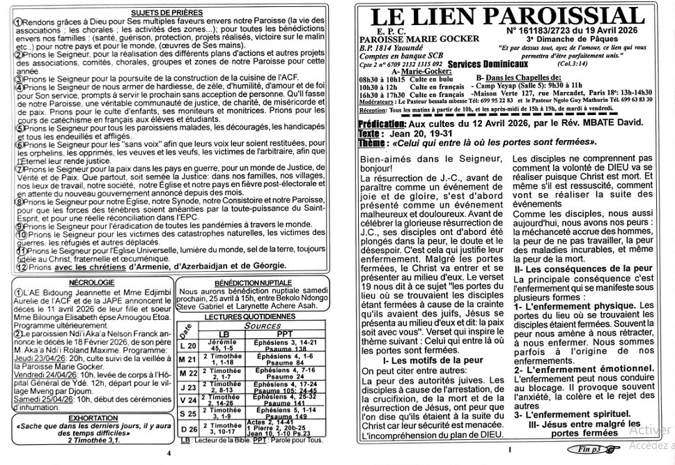 LIEN PAROISSIAL N° 161183/2723 du 19 Avril 2026